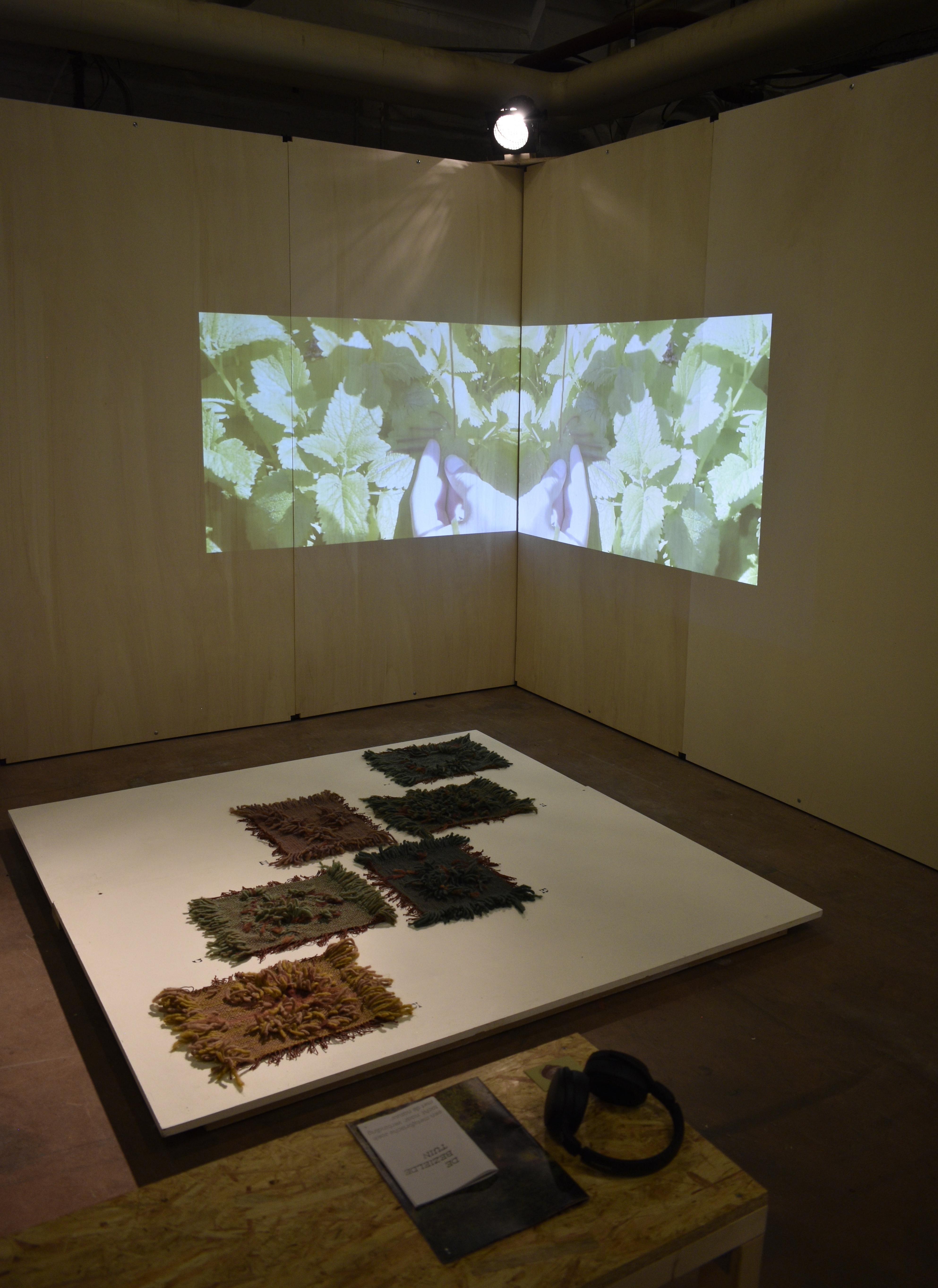 The installation Mythologies of weeds, and interruptions between the paving is a tribute to weeds. Six plants (nettle, horsetail, thistle, clover, bindweed and dandelion) that are often considered ‘undesirable’ are assigned to new myths to reintroduce the spirit of nature in the city. In the photo and video projection, new narratives emerge about our relationships to nature. The hand-woven fabrics honor the fickleness of the six plants. Fragile yet vigorous. Stinging yet soft. Contrasting yet merging.